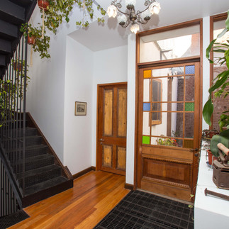 Pasillos con cuadros, que hablan de la historia y los antepasados de los dueños de casa, se abren camino en este hotel que resume la historia de Catalina Atria y John Major. Ella chilena y él californiano, vivían en San Francisco, Estados Unidos, cuando decidieron hacer un giro en sus vidas a través de un proyecto enriquecedor y entretenido para ambos. Mientras ella trabajaba como profesora y él en empresas de tecnología, la idea de un ‘guesthouse’ en Valparaíso se transformó en un sueño que empezó a tener forma una vez que se asociaron con los padres de Catalina -Rodrigo Atria y Loreto Álamos-, quienes estaban por jubilar y vieron con entusiasmo este emprendimiento familiar en una de las arterias con más carácter patrimonial a medio camino entre el plan y el cerro.